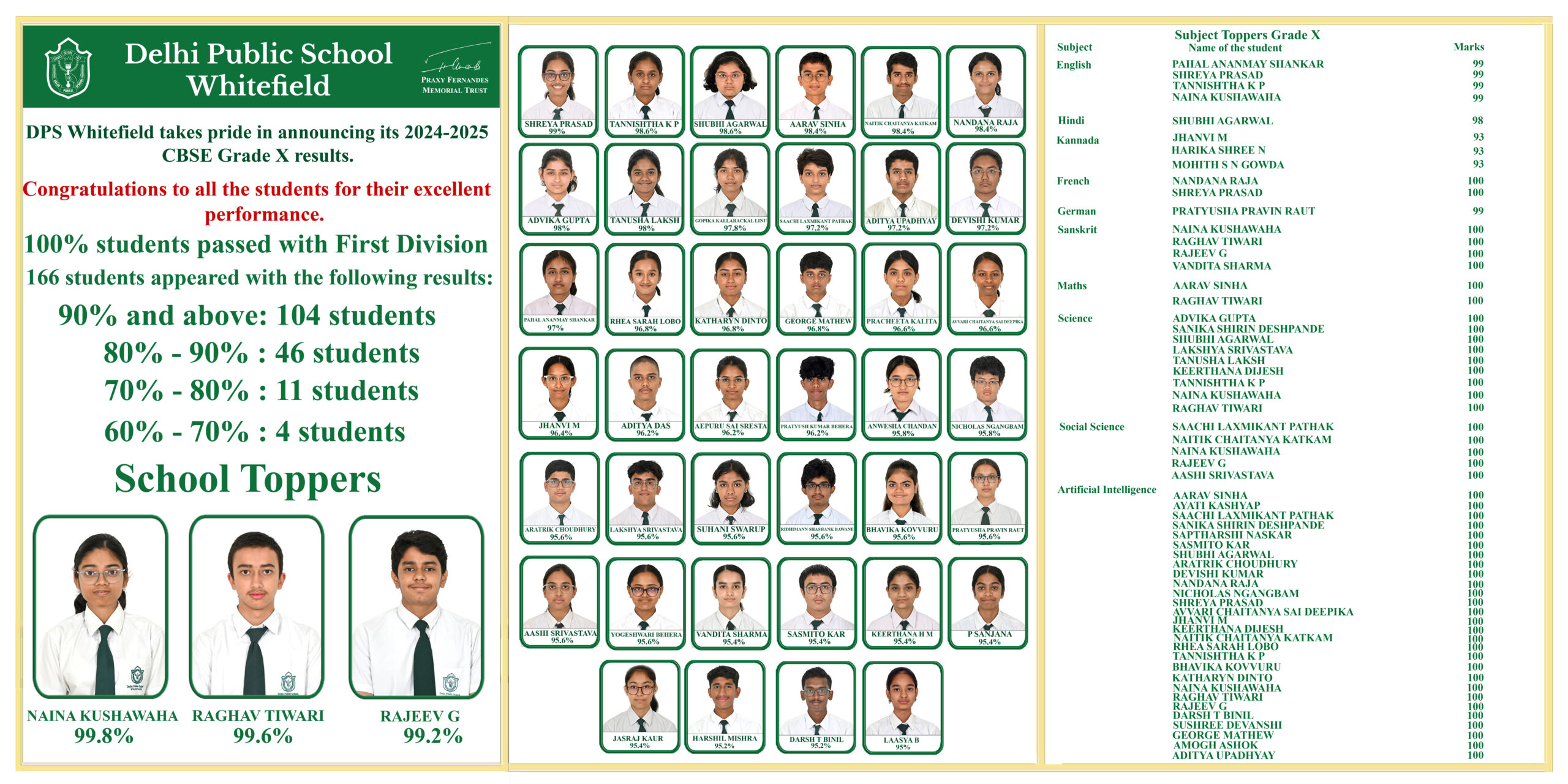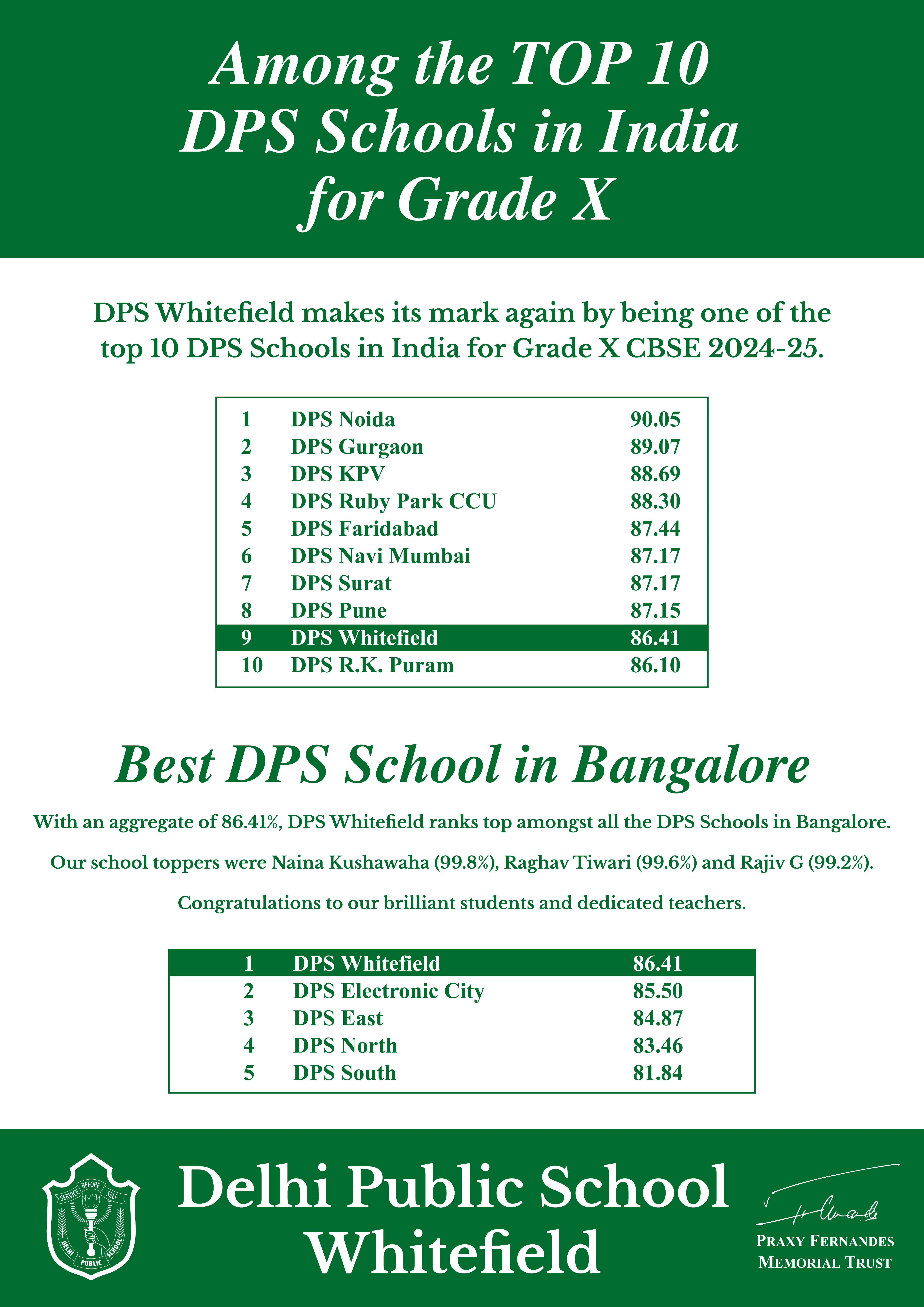 DPS Whitefield is a great place to teach and learn. We believe that there are no secrets to success. It is a result of hardwork, preparation and learning from failure. Hence we are committed to our mission of preparing students to be good citizens and lifelong learners in an ever changing world.